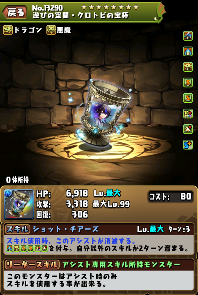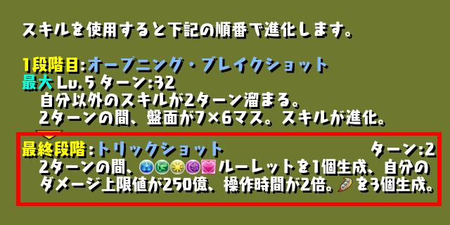 主動技能:開技後武裝消失,賦予E水、E龍、雙遲延耐性、超 combo強化、部位破壞+減2CD (3)